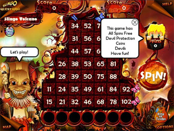 Sau khi hoàn thành các câu hỏi Quest, bây giờ là lúc tận hưởng kỳ nghỉ Slingo. Thư giãn trên bãi biển và thử sức với những trò chơi khác như Summon Joker và Pattern Match, hãy vượt qua vùng đất Coral Reef, khám phá thêm các thông tin về Platinum Coins và Tiki Jokers, hãy đi bộ tới Secret Volcano và tham gia cùng với Tiki Guy trong các trò chơi ở Volcano Slingo.